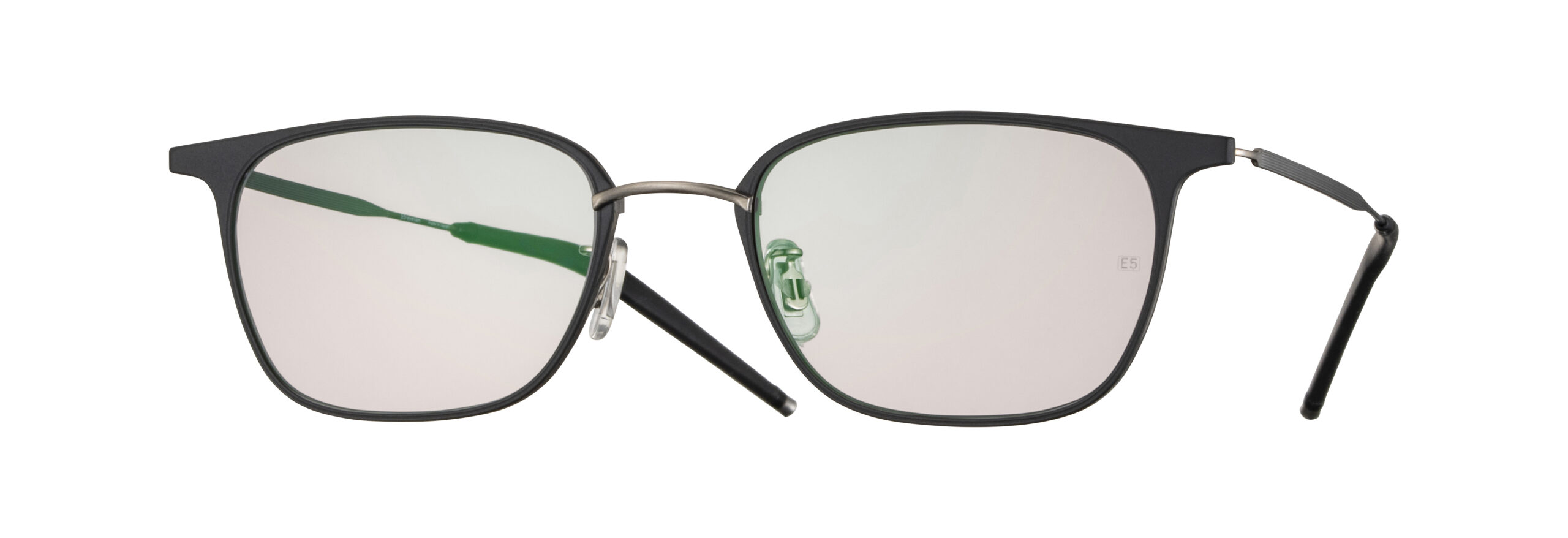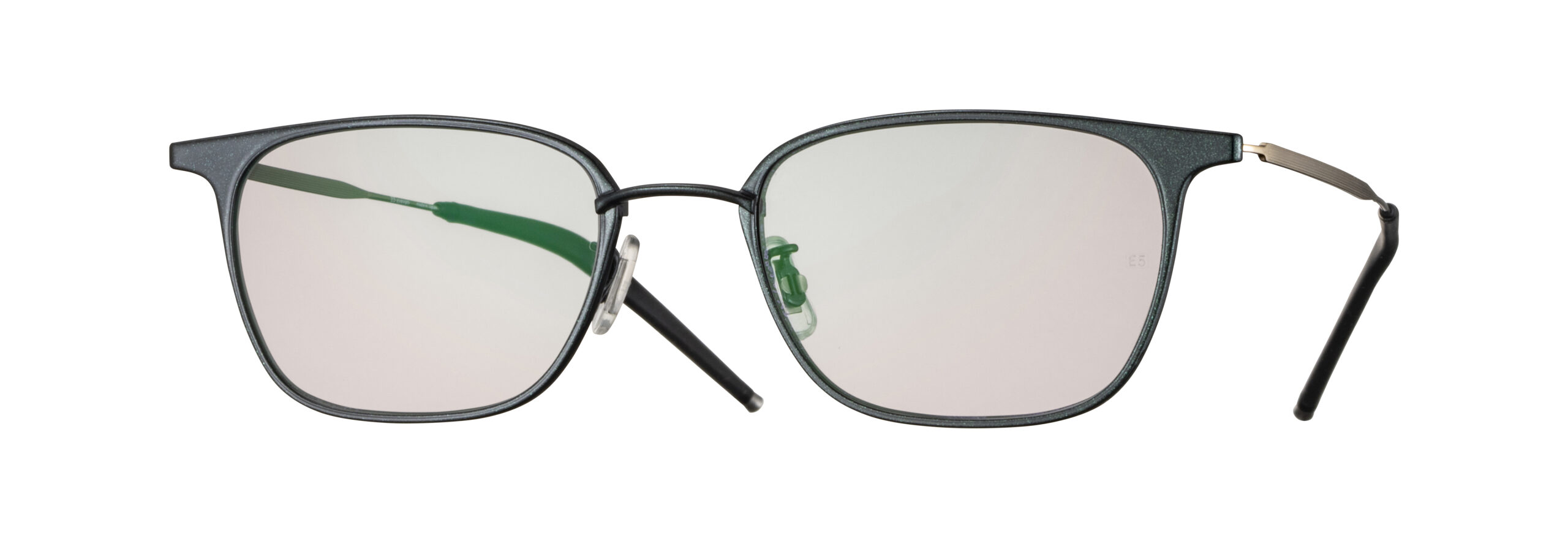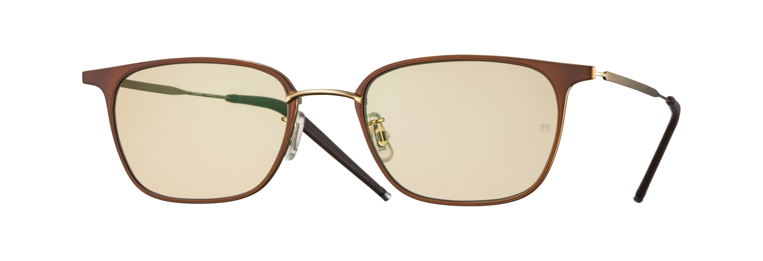 左右のシートメタルを繋ぐブリッジのロウ付け面の裏側に配置したブロー智(レンズを交換するためのネジ)に緩み防止のための特殊な加工(Vカット)を施した仕様。この構造により振動や負荷によるネジの緩みが抑止されレンズの落下などのリスクが著しく減少する。CPとシリコンで成形したグリップ性のあるモダンのエンドにはスウェーデン語で重い石という意味である非常に大きな比重があるタングステン製のエンドチップを組み合わせ、前方部及び鼻梁部に掛かる重量を軽減させた。フロントデザインには天地を抑えたシャープな印象のウェリントン型を採用した。軽さと強さを併せ持つCR39素材を用いたサングラスレンズは、日中から夜間まで着用可能な両面反射防止コート付き透過率30~40%のライトカラー。 ハイスペックなフレームとのマッチングで日常での使い易さを具現化した機能的なサングラス。